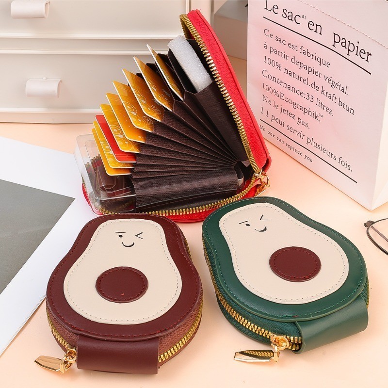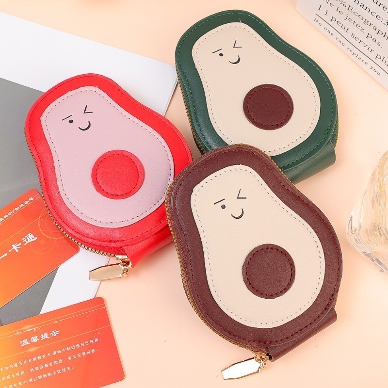 Estojo Criativo Para Cartão De Abacate-Carteira De Couro PU-Mini Bolsa Moedas Com Zíper-Porta-Cartões De Identificação Multifuncional-Impermeável , Fino , Portátil